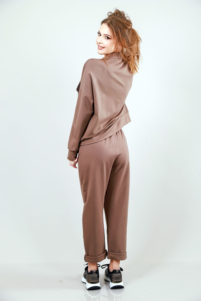 Спортно-елегантен комплект в светлокафяв цвят с кожени детайли